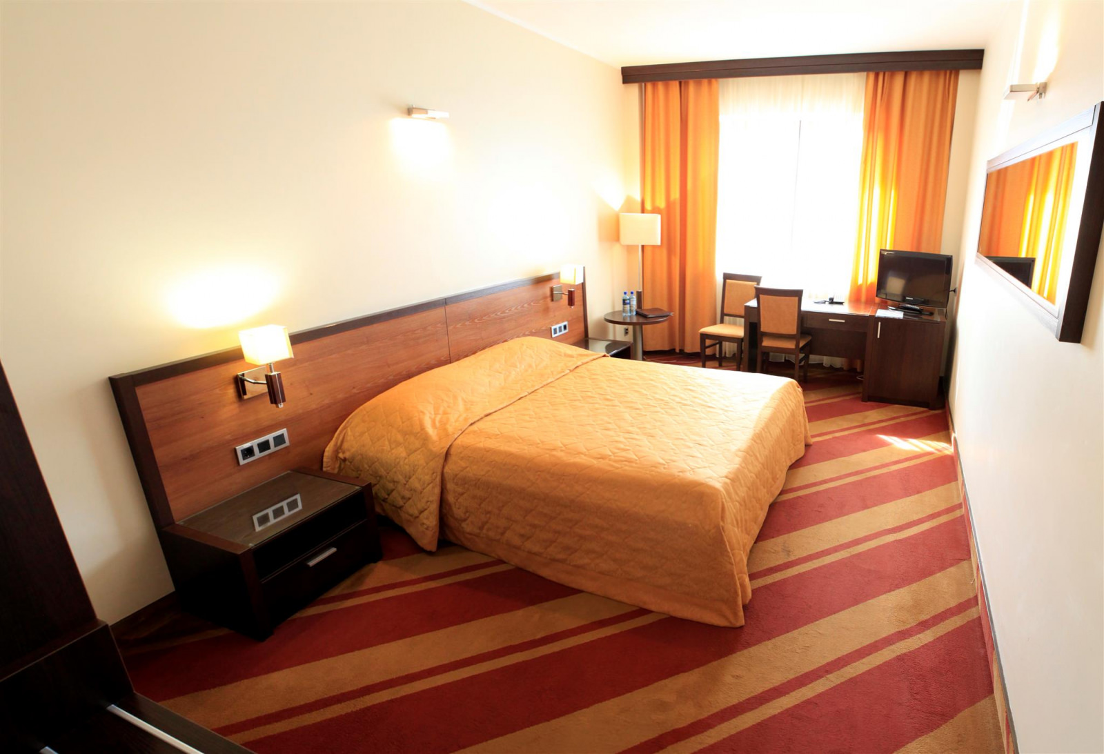Площадь номера - 23 кв.м. 2 осн. места. Мебель: вешалка, зеркало, кровать двуспальная, прикроватные тумбочки, стол, стулья, тумба багажная, шкаф. Оборудование: кондиционер, мини-холодильник, набор посуды, сейф, телевизор ЖК, электрочайник. Санузел: с ванной, туалетные принадлежности, фен. Сервис: Wi-Fi бесплатно, room-сервис, смена полотенец, смена постельного белья, уборка номера, услуги телефонной связи по территории отеля.