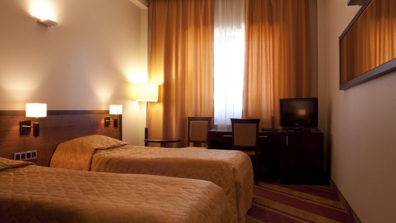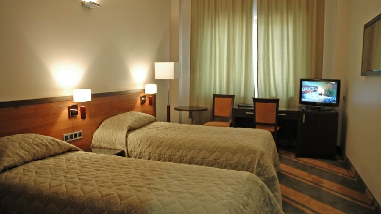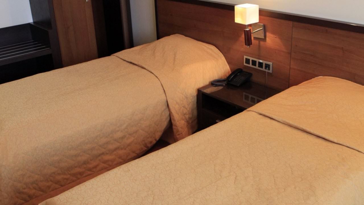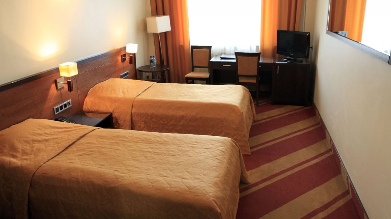 Площадь номера - 25 кв.м. 2 осн. места. Мебель: вешалка, зеркало, кровати односпальные, прикроватные тумбочки, стол, стулья, тумба багажная, шкаф. Оборудование: кондиционер, мини-холодильник, набор посуды, сейф, телевизор ЖК, электрочайник. Санузел: с ванной, туалетные принадлежности, фен. Сервис: Wi-Fi бесплатно, room-сервис, смена полотенец, смена постельного белья, уборка номера, услуги телефонной связи по территории отеля.